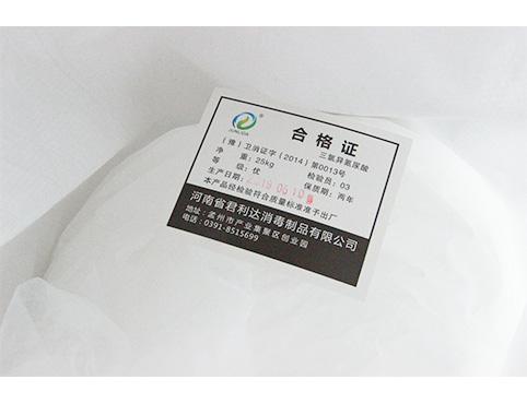 外觀:白色粉劑;規格:25kg/袋;有效氯含量:≥90%; PH值(1%水溶液):2.0~3.0; 氣味:有刺激性氯味;保質期:2年;